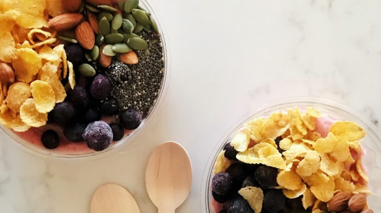 WhilebrEleanor’s is known for their grade-a pour overs, their knacks don’t stop there.brWith each new month, comes a new smoothie bowl and February’s bowl is jambrpacked with flavor and nutrients. Strawberries, bananas, and vanilla almondbrmilk mixed together, topped with corn flakes, blueberries, pepitas, chia, andbrraw almonds, this bowl is one you won’t want to pass up.