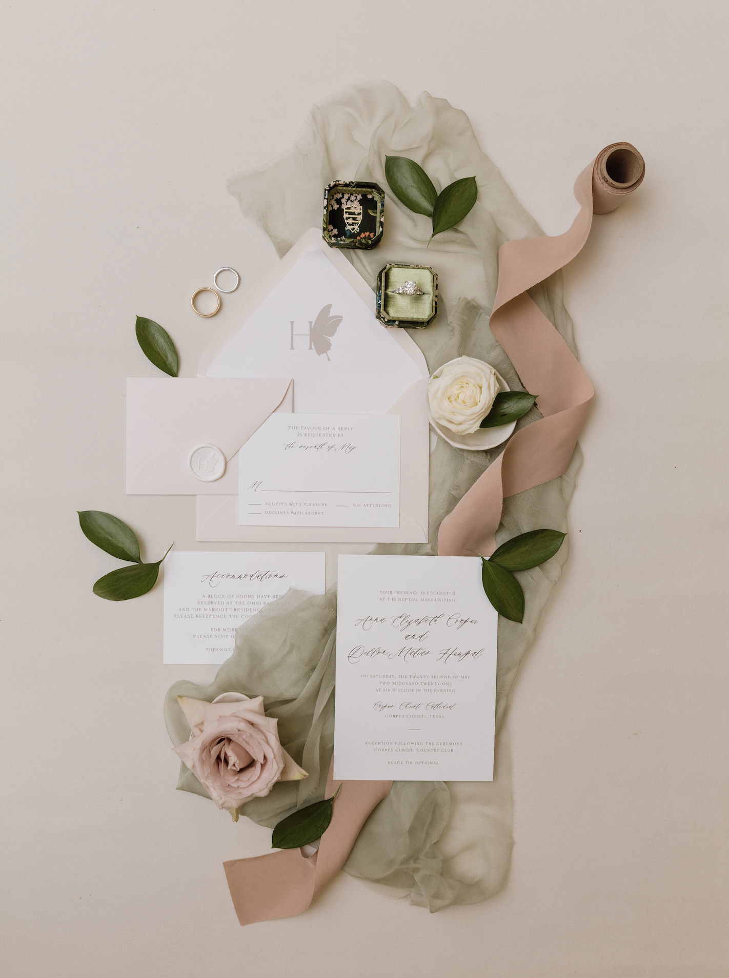 For the wedding of Annie and Dillion, the bride’s love of butterflies became the theme’s cornerstone. Taking inspiration from an installation featuring hundreds of butterflies hanging from the ceiling at Neiman Marcus, this motif was used as a way to add special and unique touches throughout the celebration.