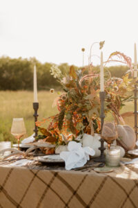Decorate the surrounding area with a variety of pumpkins and gourds to add whimsy to the dining experience.