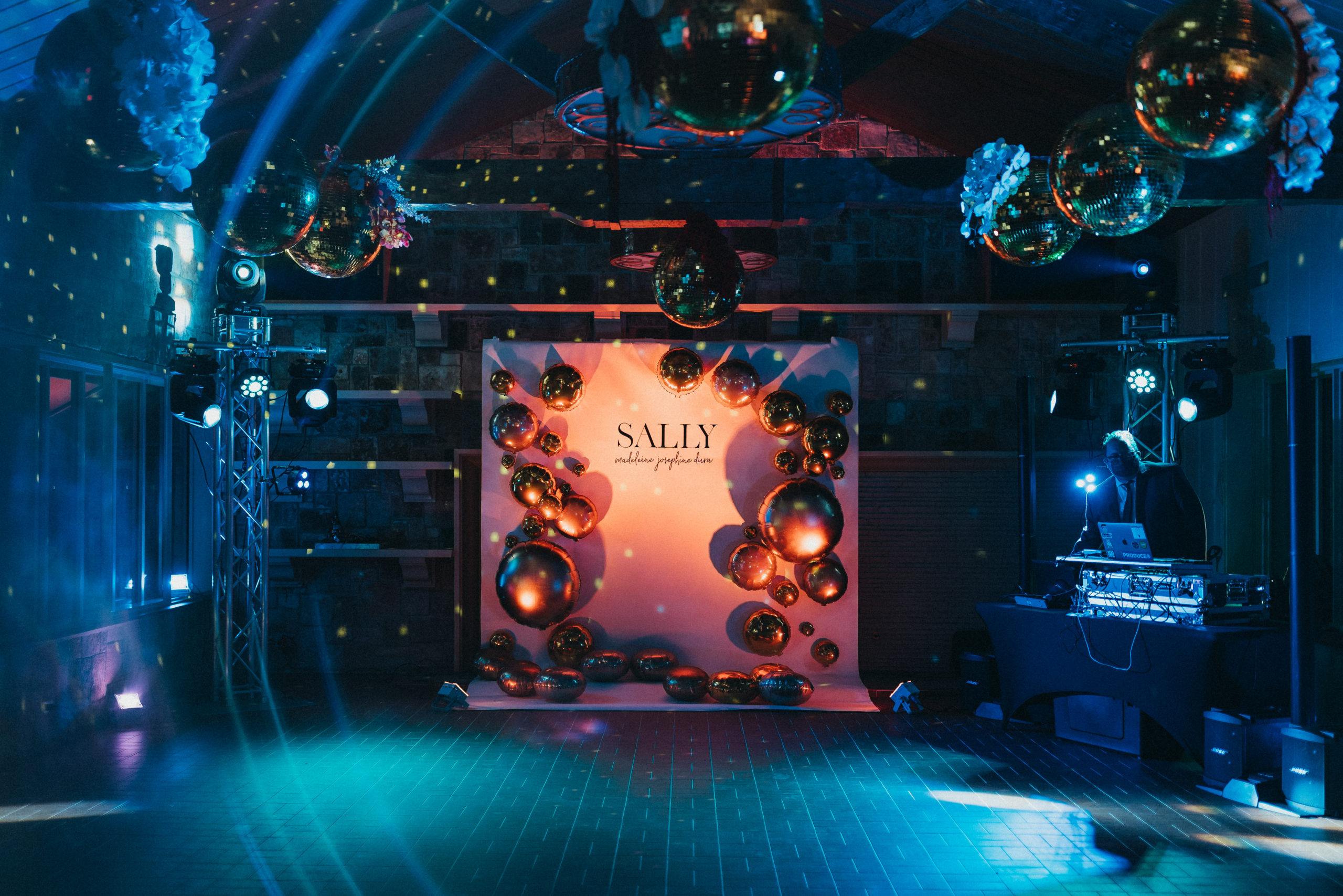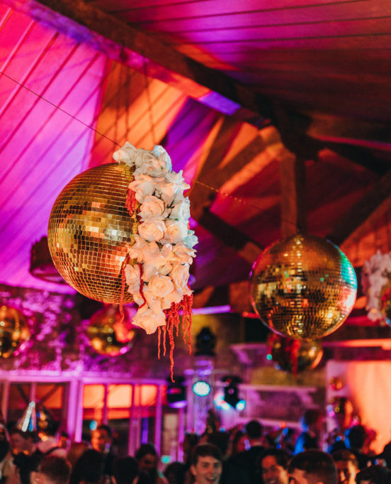 This debutante party was held on New Year’s Eve as a way to celebrate both the woman of the hour and the new year on the horizon. Glittering disco balls, a champagne wall, a modern bouncy house and touches of Keith Haring-inspired decor details rounded out the glitz and glamour of the evening.
