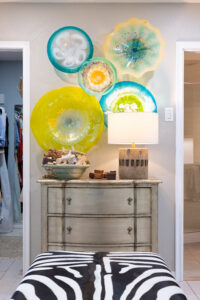 “My home is filled with hand-made art; I can feel the love poured into each piece,” Dellinger mused. These unique items, flawlessly appointing the quiet color palette and furnishings, reflect cultured travels, personality and a lifelong passion for the arts.