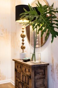 From ZZ plants known to flourish indoors to statuesque orchids, verdant greenery is spread through each space, emphasizing the fresh and soothing ambiance. “I always have live plants and fresh flowers in my home,” Dellinger said. “They give me the peaceful energy I crave.”