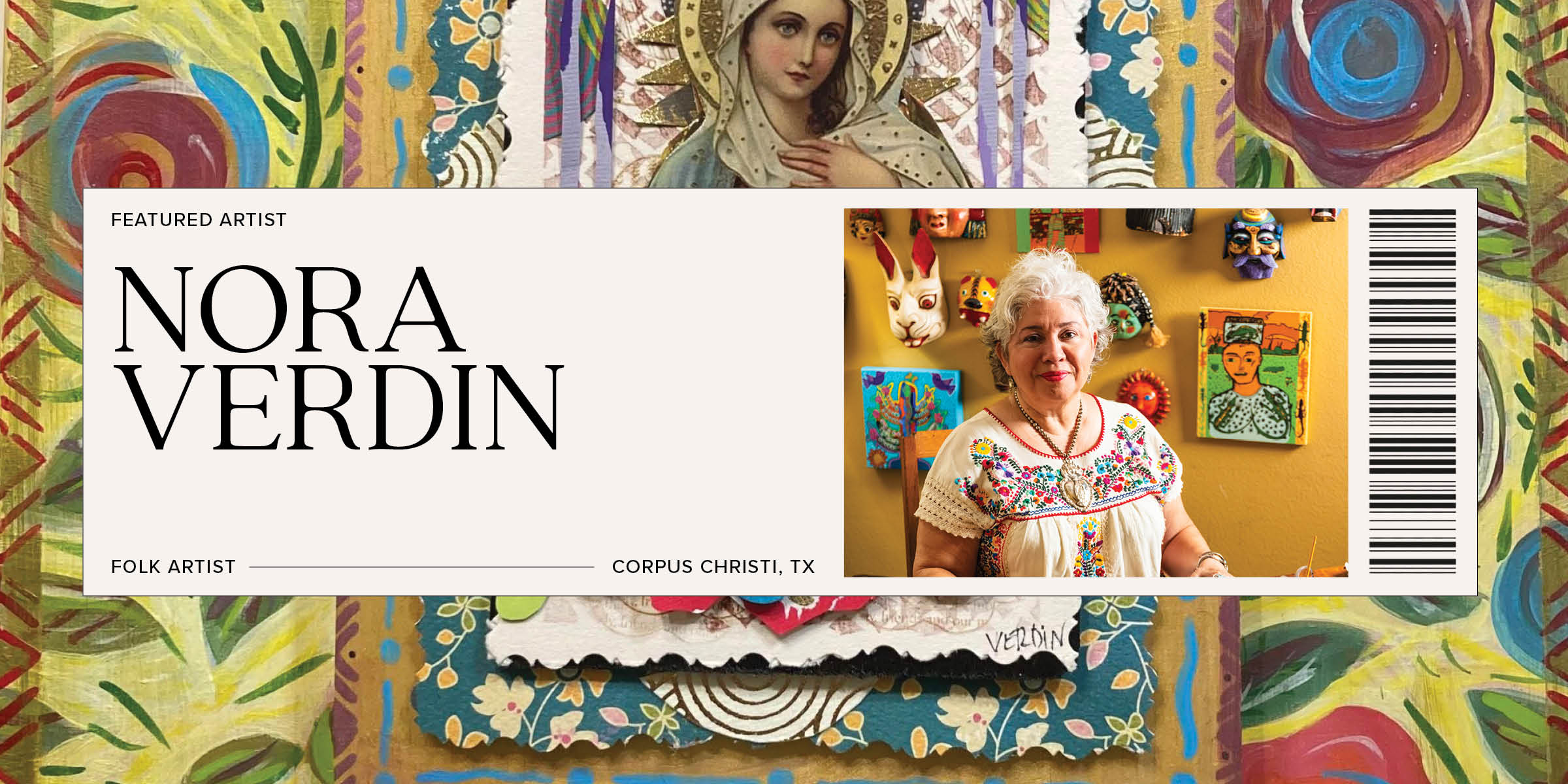 Every night, when she settles into the quiet corner of her studio, Mexican folk artist Nora Verdin works under watchful eyes. More than a dozen handmade Mexican masks hang behind her, overlooking her process in a range of emotions—smiling, frowning, worried, proud. Some stick out their tongues; others resemble folk legends more than people. Each tells a wordless story, echoing ancient traditions through color, texture and form. Folk art, often an elusive genre to define, connects the faces on her wall to the alebrijes on her shelf and to the piece currently taking shape beneath her hands, sharing a common thread: generations of artists whose inherited traditions make even a single stand-alone gallery piece possible.