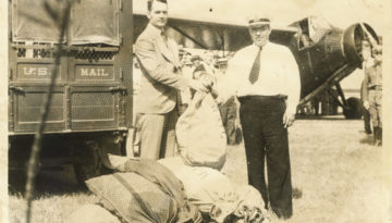 Gilbert J. McGloin and Walter B. McAlister mark the occasion of the first dispatch of airmail from Corpus Christi on