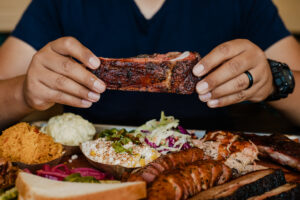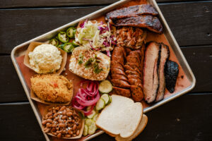 Today, that legacy lives on. Meinhausen’s family continues to carry on the work he began, with his eldest son, Matt, assuming the role of pitmaster. The homemade smoker, once checked through the night, has given way to a wood-fired rotisserie pit, fueled exclusively by oak. Brisket leads the menu, followed closely by Matt’s in-house sausages and fall-off-the-bone spare ribs, while the red-skin potato salad remains a perennial favorite.