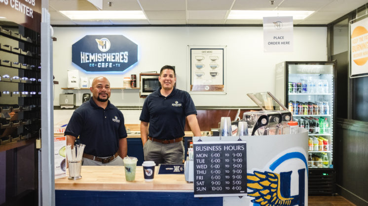 Like many great stories, the tale of Hemispheres Cafe sprouted from a mutual love of the majestic coffee bean. Dexter Rhines and Joel Torres, coworkers at Corpus Christi Army Depot, each dreamed of opening a coffee shop. Both men of drive, once they realized their mutual goal and upgraded their relationship from coworkers to business partners, nothing was going to get in their way.