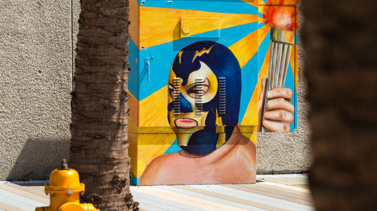 By: Emma Comery  Photos by: Rachel Benavides (Header image featuring original artwork by Gerald Lopez | In gallery: Electrical Box Mural featuring original artwork by Sandra Gonzalez)