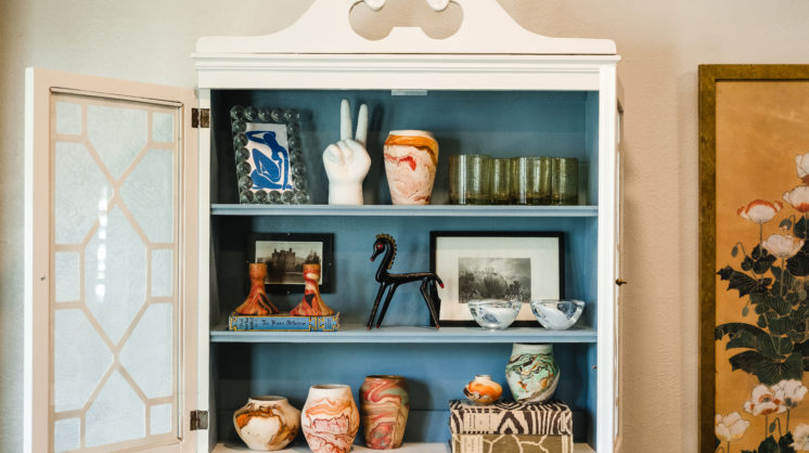 Don’t be afraid to paint the inside of your cabinet! A surprise pop of color behind the glass doors of a china cabinet is one of the easiest ways to bring an on-trend color into your home. Think about the collections you want to display and choose a color that will contrast.