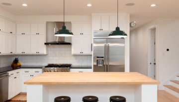 Bright white walls juxtaposed with wooden accents and black detail make a statement that never goes out of style