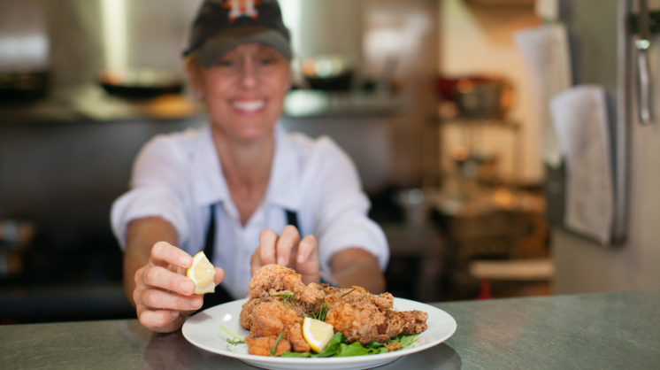 Karey updates her menu six timesbrper year to reflect local seasonalbringredients and seafood. Her menubrdesign is a balancing act betweenbrwhat she is passionate about andbrwhat her customers want. Listeningbrto her guests inspired the gluten-freebrtouch to the fried chicken.