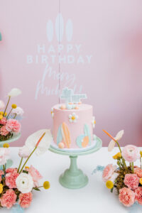 This coastal birthday party made a splash with playful details and creative flair. Hosted at the Corpus Christi Yacht Club, the event embraced a pastel surf theme brought to life with the help of local vendors such as Always in Bloom, Posh & Posy, Rachel & Rylie, Coastal Confections and Jennifer Rose Custom Cookies. The Motif, a laser acrylic studio out of Houston, helped with custom signage and decor, while Central Texas-based vendor Folk & Rowe aided in the perfect event rentals to set the scene. Guests stayed entertained with hands-on activities like decorating flip-flops and sunglasses, creating fun keepsakes to take home.