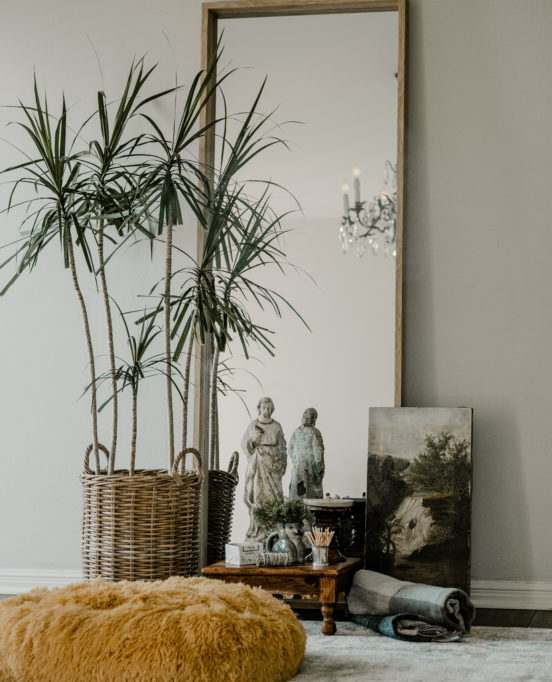 Place a mirror in the space. Mirror gazing is a practice to help improve self-worth and compassion. As you look at your reflection and quiet your thoughts, begin focusing less on your flaws and more on your life and experiences.
