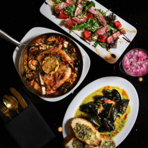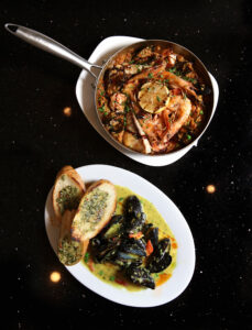 As for the food, Chef Adam Gonzalez has created a collective menu of fusion dishes that celebrate local seafood and explosive flavor. Chef Gonzalez works with local seafood vendor Alby’s to provide fresh seafood for his chili-infused shrimp and decadent coconut curry mussels.