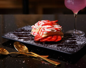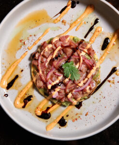 “I wanted to lean toward healthy options that are also delicious,” Humpal said as she reflected on narrowing down the menu. Her personal favorite is the Ahi Tuna Tostada, made from sushi-grade tuna marinated and topped with avocado, pickled red onions, jalapenos and spicy mayo on a crisp tortilla. The Ahi Tuna Watermelon salad is a refreshing plate, balanced with sweet watermelon and umami tuna on a bed of watercress. And the Miguelitos, featuring Spanish puff pastry filled with creamy goat cheese whipped with strawberry puree, is also a must-have.
