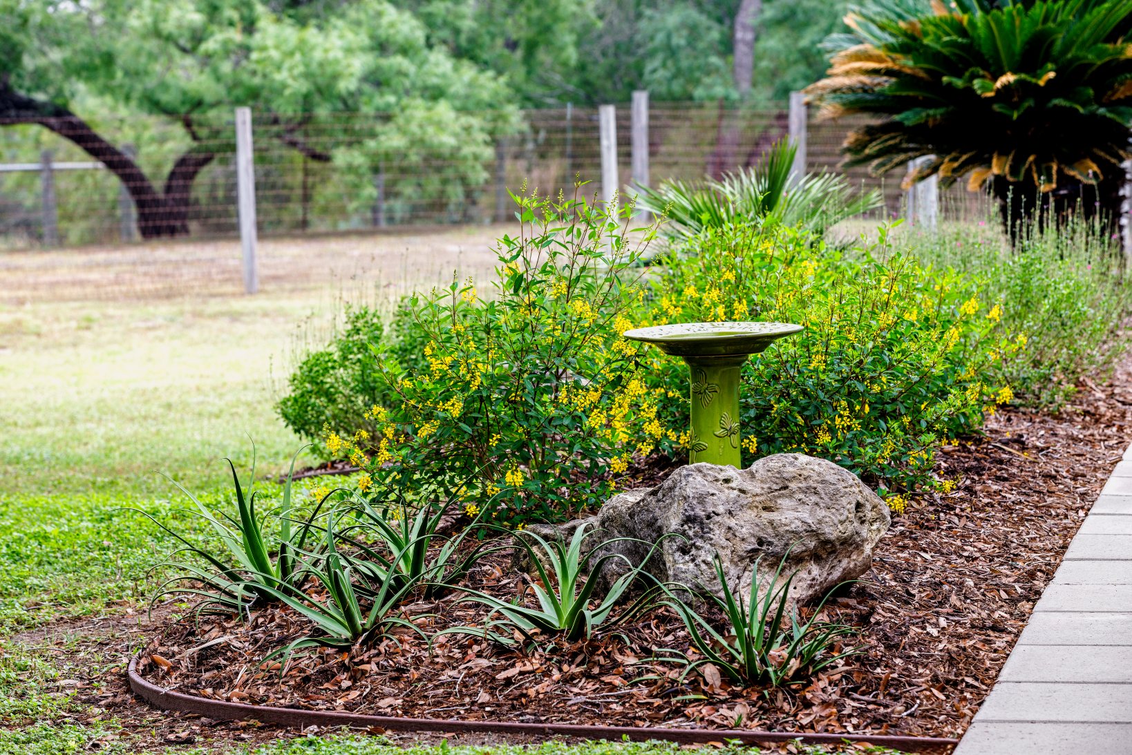 Did you know that applying a proper 3” layer of natural mulch, like hardwood, cedar, or pine straw mulch, keeps underlying soil temps more than 20 degrees cooler?! Gill’s Landscape Designer, Kathy Hubner attended a webinar presented by Bartlett Tree Research Laboratories in which they shared amazing results from a mulch study in San Antonio. Soil temperatures were measured at 6″ deep (where plant roots live) on a 105 degree summer day. Bare soil with no mulch, 6″ down was 102 degrees. Soil under grass was 92 degrees. Soil beneath a 3″ layer of mulch was only 76 degrees!! Keeping plant roots cool helps them take up water and nutrients and prevents heat stress on the plant. To achieve a 3″ layer of mulch takes about 1 bag per 12 sq. ft.