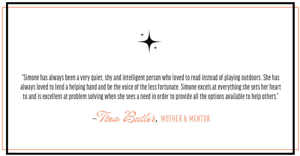 Simone Sanders’ resume is quite impressive. And while her professional accomplishments are vast, the amount of time she’s spent giving back to this community her entire life truly stands out. She’s served in various board positions within the local and state chapters of Texas Association of Black Personnel in Higher Education (TABPHE), she’s spearheaded efforts to continue and expand the only Juneteenth festival in the area and so much more — none of which she gets paid to do, and all of which she does in her “free time.”