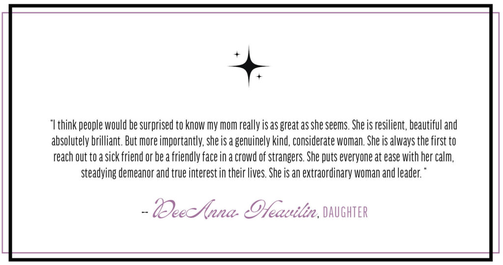 “There’s always a way,” Sisk said when asked about adversity she’s faced along the way. “Finding that way takes a little creativity, a lot of persistence and a lot of help. But there’s always a way.” This is a mindset she proudly adopted from her mother, a tenth-grade dropout who raised two children on her own while working at a small country restaurant and eventually became the Commissioner of Wage and Investment at the IRS.