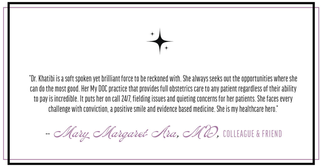 Currently, Khatibi is working to bridge the gap for those who might not qualify for Medicaid, but can’t quite afford steep insurance prices; or those who have coverage for catastrophic events with astronomic deductibles and co-pays. New Life has negotiated pricing for imaging and prescriptions, and even for patients with insurance, its prices are often cheaper. Her credentialing allows for a wide scope of expertise, but her passion — and the area in which she has seen a deficit in quality care — is obstetrics. What started as looping OB care under the umbrella of New Life has morphed into starting a non-profit called My DOC, which stands for Direct Obstetric Care, for prenatal, birth and post-natal care.