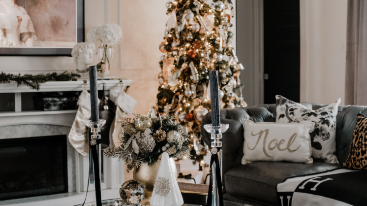 Decking the halls with unique ornaments, vintage ribbon, and thrifted finds makes for a glamorously chic and cozy space. Many of us tend to focus a lot of effort on our trees and mantels, but don’t forget to add holiday cheer to your sofa and coffee table, too.