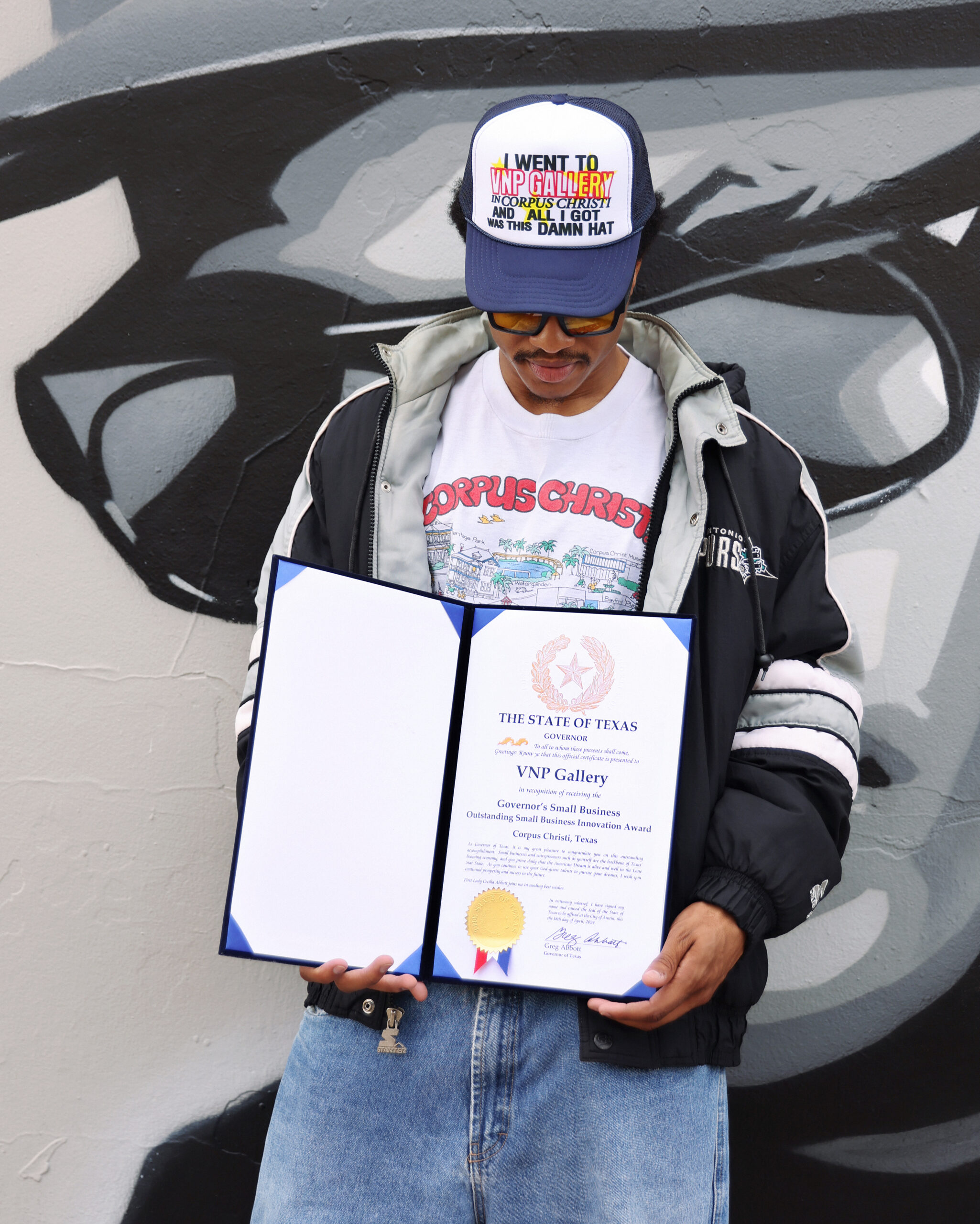 In 2018, Winfrey and two of his closest friends, Jimmy Canela and Emilio Trevino, opened VNP Gallery to provide the community with the clothing store Winfrey had always longed for growing up. Six years and two locations later, the shop is thriving and others around the country are taking notice, as the shop and Winfrey’s team recently received the State of Texas Governor’s Small Business Award for Outstanding Small Business Innovation and are involved with one of the highest-regarded vintage clothing conventions in the world.