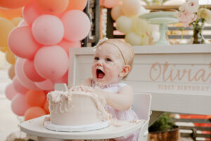 To smash cake or not to smash cake? That is the one-year-old birthday party question. The choice is entirely up to you, however, should you opt to participate in the tradition, here are a few pointers. Keep the cake small and relatively simple in design; stick to white or light-colored icing and ensure your photographer is at the ready before you place the cake in front of the guest of honor. Don’t forget to have another dessert option for the rest of your guests!