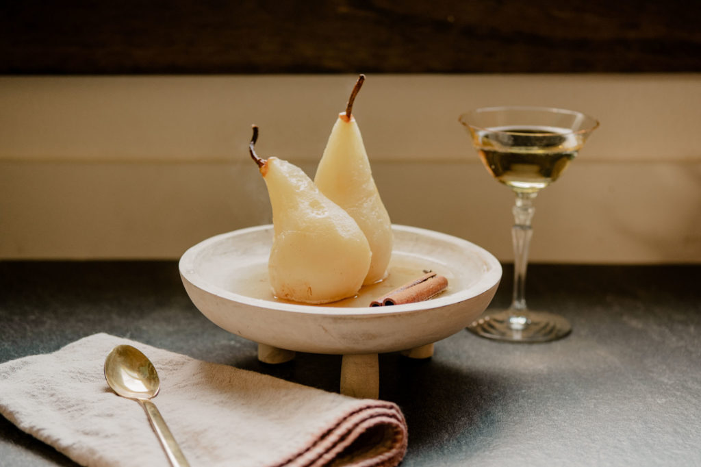 Simmer pears for an additional 20 minutes, until tender. Remove the pears from the liquid and increase to high heat. Reduce the liquid by half until it’s a syrupy consistency, another 20-30 minutes.