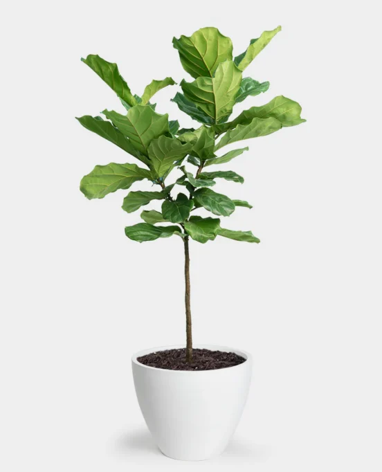 Fiddle leaf figs like temperatures between 60 and 90 degrees; when temperatures drop below 50º, bring any outdoor pots inside. Once you find a spot the fiddle leaf seems to like, don’t move the plant too often. Instead, rotate the pot once per month to distribute light equally to all sides; otherwise, the plant will begin to lean or grow leaves unevenly.
