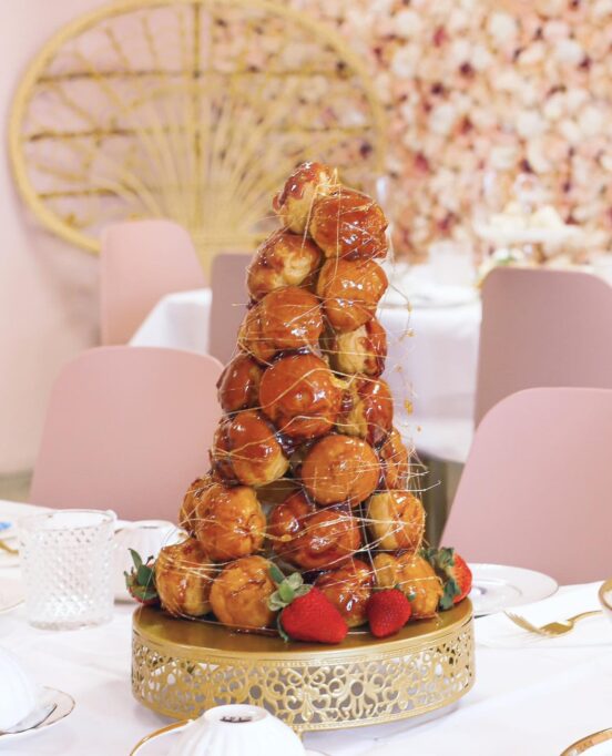 Embodying timeless elegance and French-inspired artistry, this dessert is a captivating centerpiece. Hand-crafted cream puffs are crowned with a glossy caramel drizzle, for a visual treat to enchant your guests. 1336 S. Staples St.