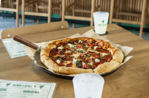 After a day of play, guests can unwind with pickleball-themed specialty cocktails and a variety of menu items such as salads, burgers and pizza. The outside patio has plenty of seating for spectators to sit back and watch the action or even enjoy live music on select days.