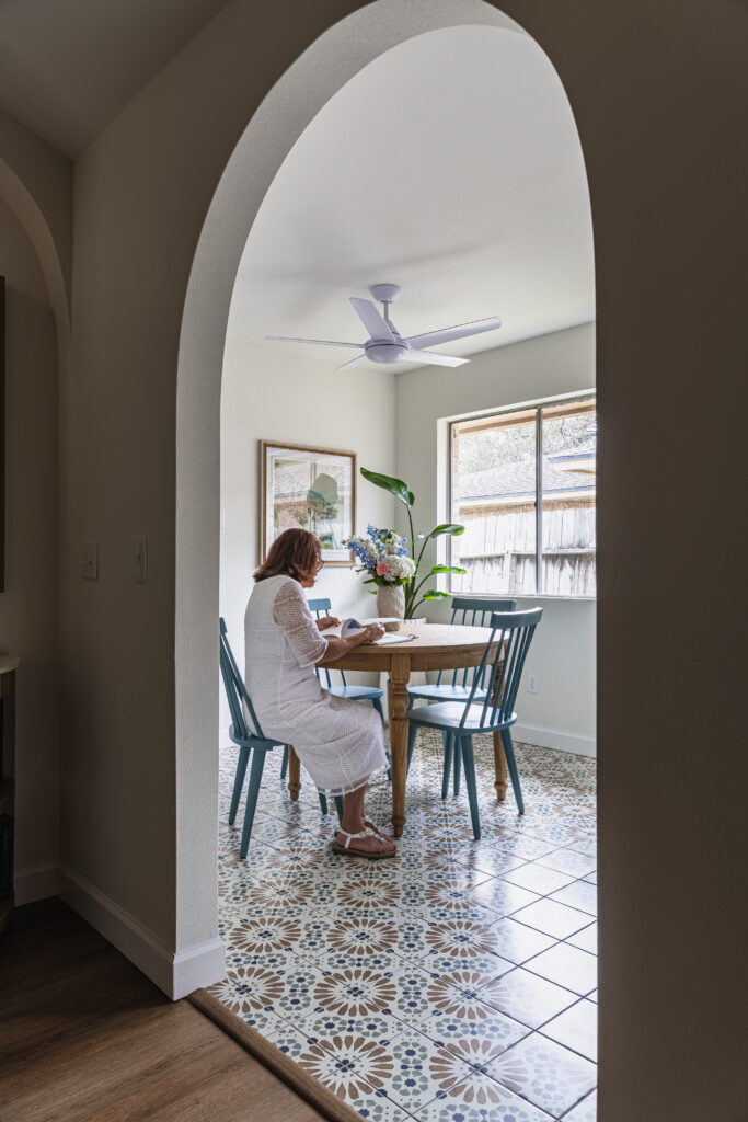 That small exchange sparked a transformation. Today, those arches soften transitions between rooms, frame light and subtly honor both Spanish Colonial architecture and Sandra’s Salvadoran heritage.
