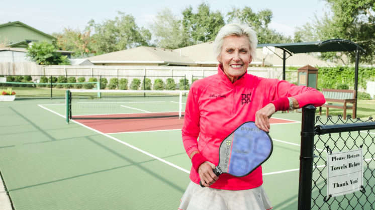 Pickleball – which Marold says is “so fun to play” – is quickly growing in popularity in Corpus Christi. She loves to stop by the court at the country club to visit with players and give free tips. She still plays competitively, too, having won national singles titles in her age group eight times since 2009, and she travels the world with her sponsor, Paddletek, to teach others the sport.