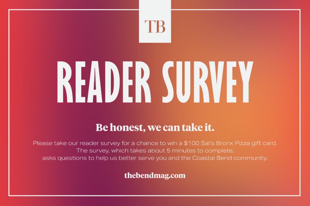 Thank you for viewing The Bend Magazine’s reader survey. This survey is designed to help our team gather important information on how readers interact with us. Our goal is to provide readers with engaging content that keeps them informed about the Coastal Bend lifestyle. That being said, we want to make sure we continue to provide our audience with what they are looking for when coming to The Bend.