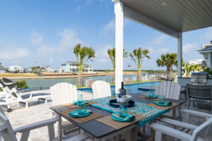 Aside from the breathtaking water views of the canal and bay, Jenkins and Hailey had a list of requirements for their new vacation home. “We wanted a large patio, a large space in the back and an open feel throughout the house,” Jenkins said.