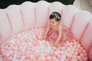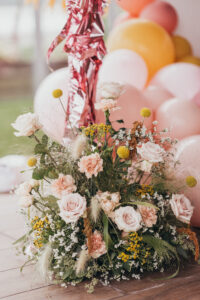 For this picturesque 1st birthday party at The Beacon, tones of baby pink, dusty rose and burnt sienna came together to create a soft, warm palette seen in the gorgeous floral arrangements and playful balloon accents from Posh & Posy.