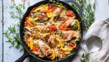Skillet Chicken and Rice, Grass-Fed Skillet Steak and Summer Vegetables, and Skillet Berry Crumble.
