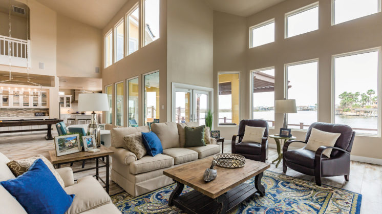 The home did not always have a fresh, crisp, and modern vibe. Tina made many renovations to the home for the perfect Morris touch. One of her favorite changes was maximizing the view of her home. She felt that with such incredible surroundings, why not let the view take the forefront and keep the decorations to a minimum. What better way to enjoy the view than through windows? Several walls were turned into windows, making a perfect use of lighting while focusing on the waterfront views from all bedrooms, living and dining areas. She also took safety measures and replaced the older flimsy windows with hurricane impact PGT windows. Luckily, this addition came in handy as Hurricane Harvey hit shortly after her renovations were complete.