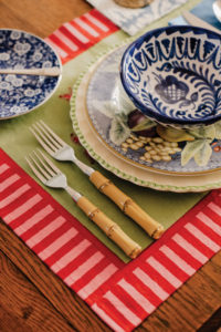 I’m a firm believer in mixing patterns whenever possible, and this extends especially to table settings. No matter what your interior design taste might be, a tablescape is the quickest and easiest way to inject playfulness and pattern into your home, and to experiment with colors and prints that might otherwise be daunting. Stripes, paisleys, bold colors and graphic patterns — anything goes when you are setting a table, and in today’s style climate, more is definitely more.