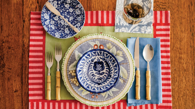 Don’t forget the textiles! Tablecloths, placemats and napkins are having a bit of a moment right now, and they make a great way to play with pattern and color.