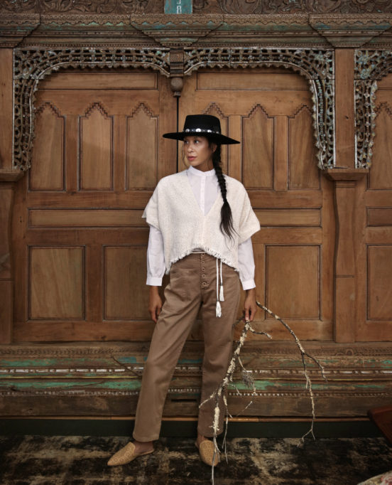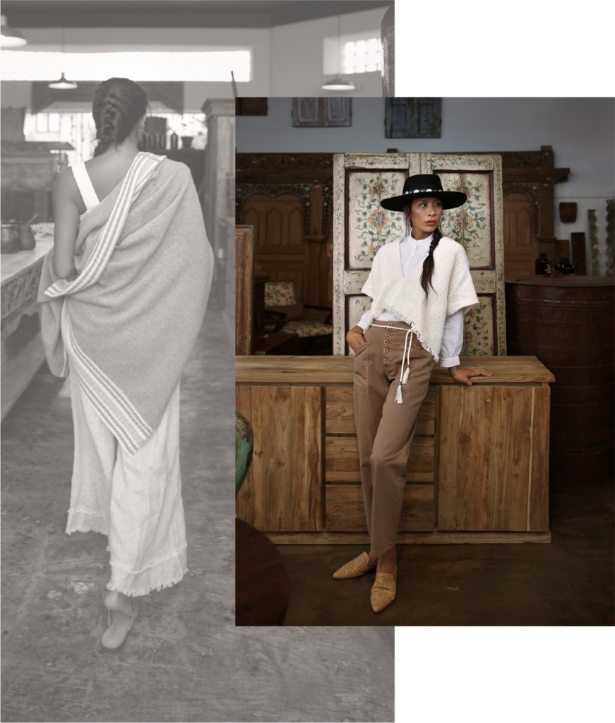 You can create unique transitional moments by combining varied fabric textures and playing with silhouettes. For example, a fluid wide leg pant is grounded and balanced by a rustic linen texture in a tailored shape, or by reining in oversized proportions with cropped layering pieces in a tone-on-tone palette.