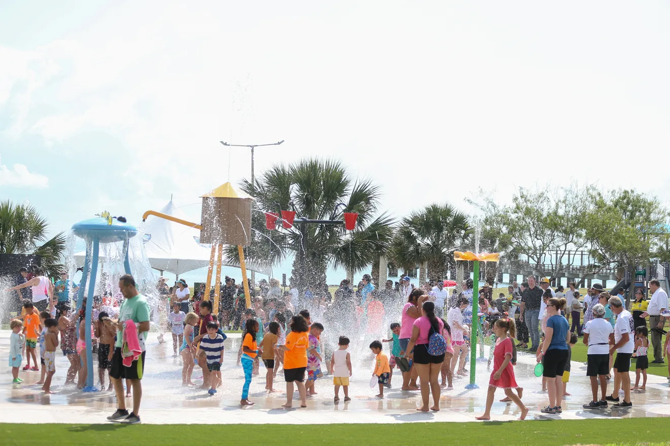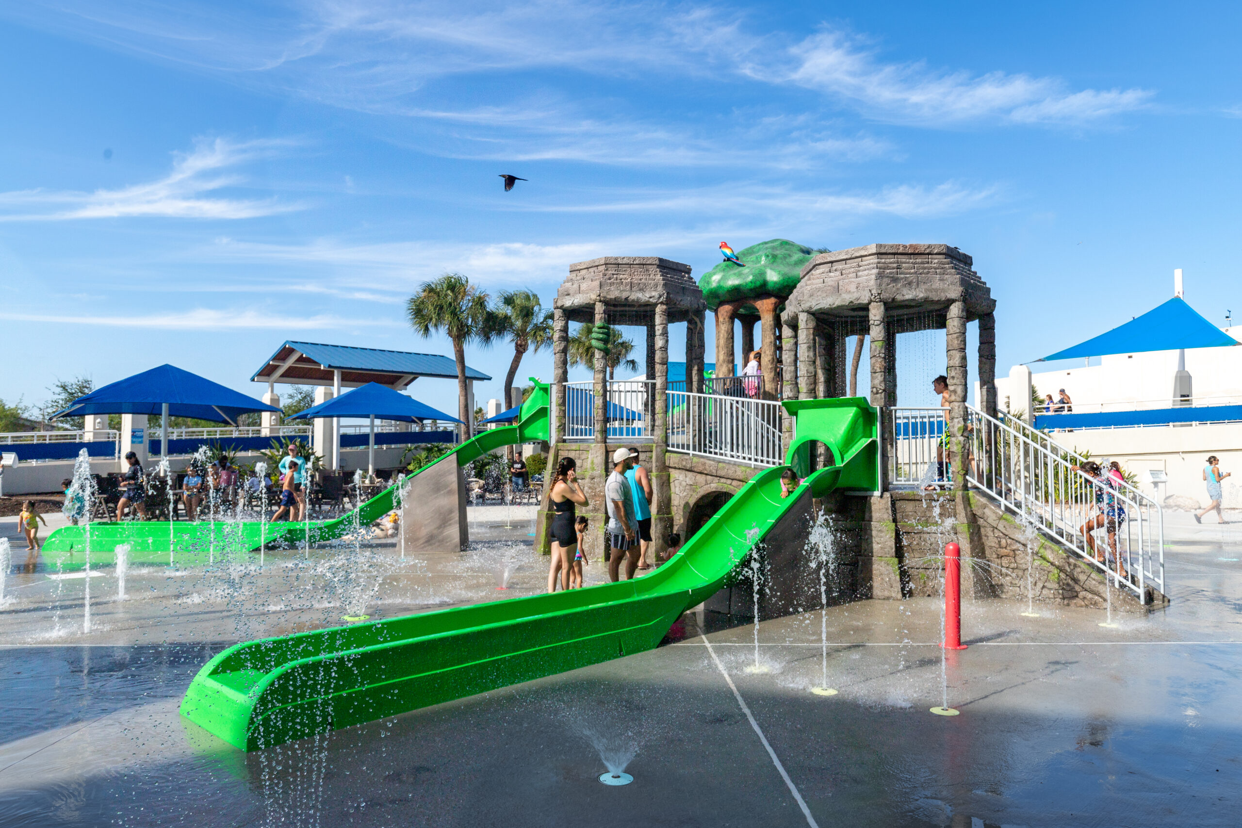 The highly anticipated Bayfront splash pad at Cole Park offers 23 interactive water features for children of all ages. These features include bucket trios, pirate cannons, jet streams, a towering water structure, a ground-level geyser and an ADA-accessible play area. The splash pad is enclosed by a safety fence, with synthetic turf surrounding the area and paved pathways. 2030 Ocean Dr