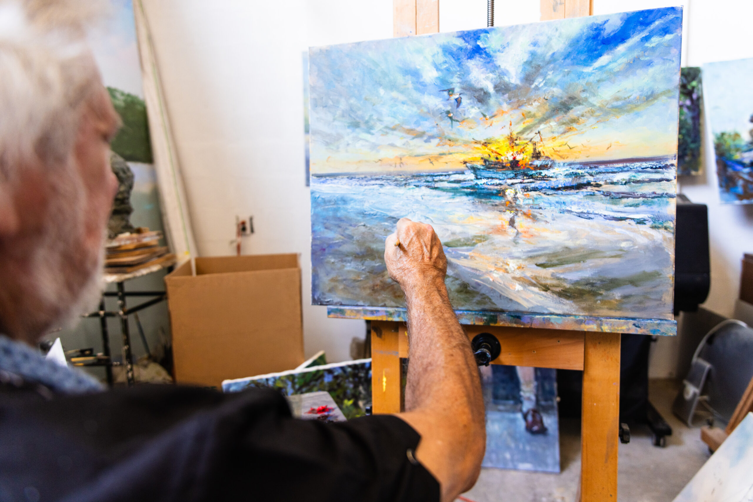 For painter Steve Russell, the earliest sparks of creativity arrived not in a classroom, but in the improvised quiet spaces of childhood. As a self‑described “obnoxious little boy,” he laughs remembering how adults would hand him paper simply to keep him busy. “They’d say, ‘Go draw something,’ and I would. Then I’d show it to them, and they’d say, ‘That’s real nice. Now go draw another one.’” He pauses, smiling at the irony. “I’m still doing that to this very day.”