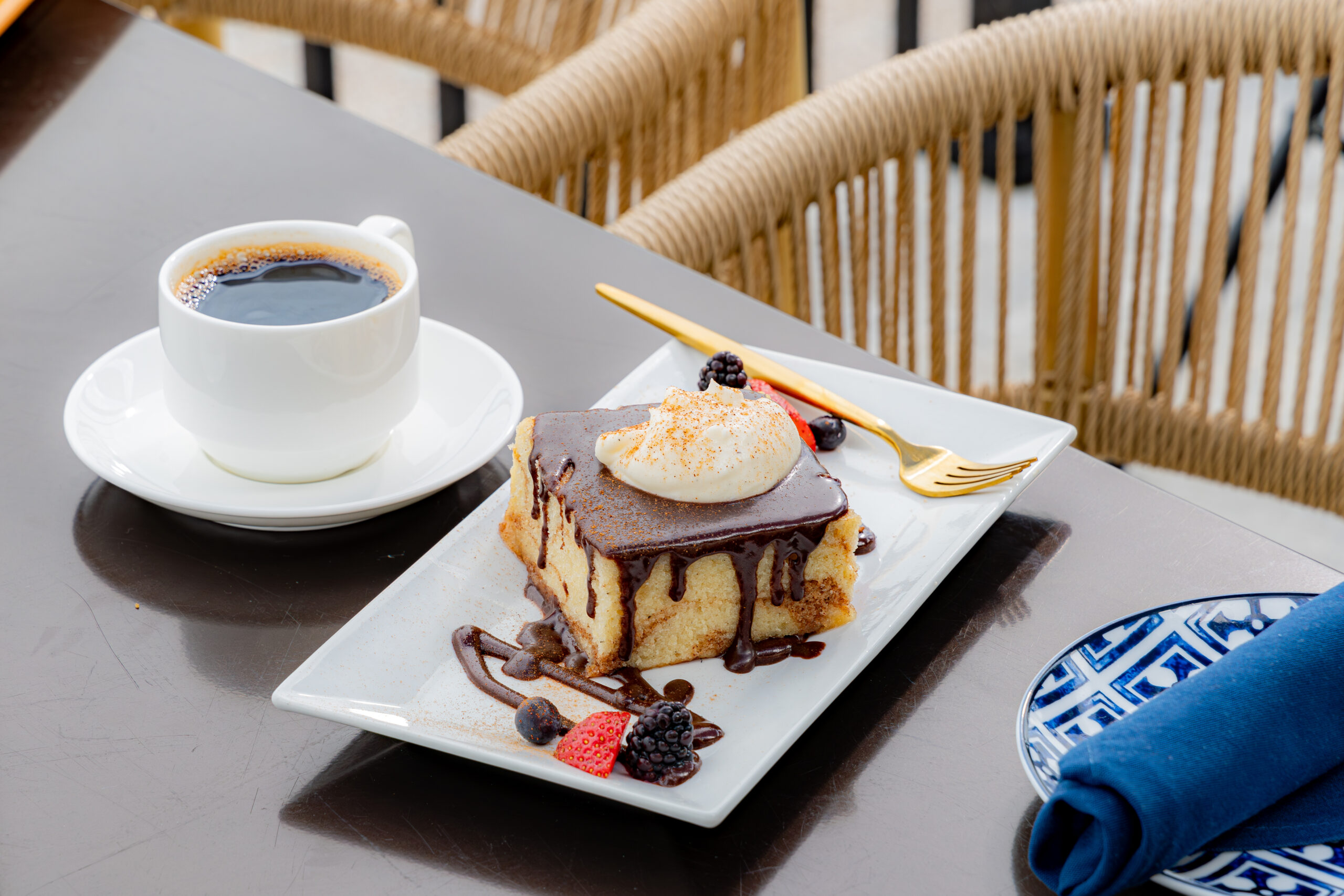 The chocolate churro cake at Gallery 41 combines the quintessential Mexican dessert with a blanket of dark chocolate sauce. The cinnamon and chocolate pairing is a no-brainer–as is enjoying this dessert on the patio with a side of espresso. 100 N. Shoreline Blvd.