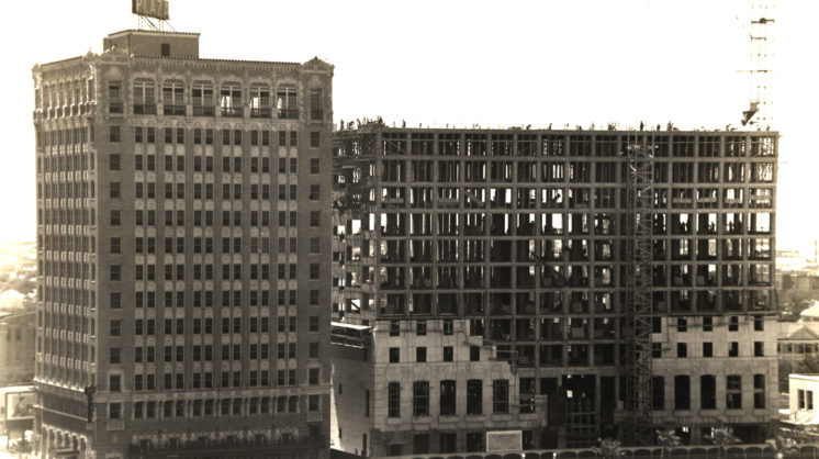 The Driscoll Hotel opened May 25, 1942, during a period of rapid growth in Corpus Christi as a result of the arrival of the Naval Air Station. The new seawall construction changed the appearance of downtown forever, as did the arrival of the city’s new tallest building, standing 20 stories and rising above other buildings on the bluff.