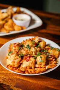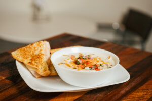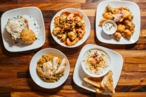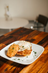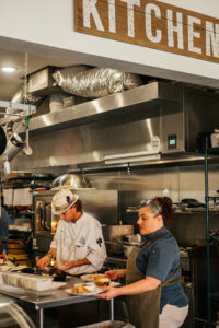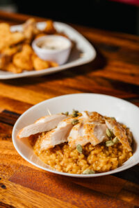 No doubt, U.S.S. Chefs run a tight ship. Chef Adrienne “Adie” Cardenas hand-forms hoagie buns for the lunch special, Italian Grinders. Chef Rodriguez spoons large portions of steaming lasagna for a catering order. Chefs Demers and Fernando Cardenas work quickly, calling out orders to assemble crispy cauliflower with spicy ranch and pumpkin risotto for a group of brunching ladies.