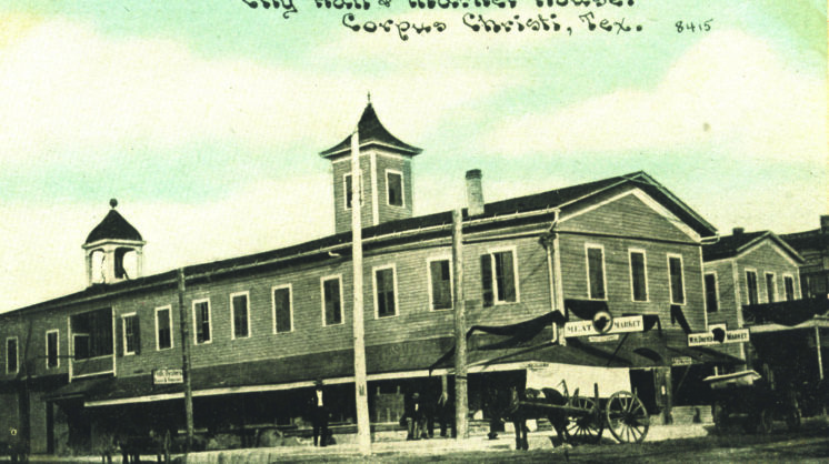 Built in 1871, Market Hall was Corpus Christi’s first publicbrbuilding. On the first floor, vendors rented stalls and sold basic wares, includingbrmeat and vegetables, to the citizens of Corpus Christi. Dances and other communitybrsocial events were held in a large hall.