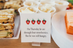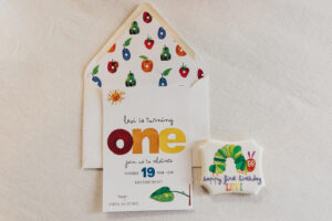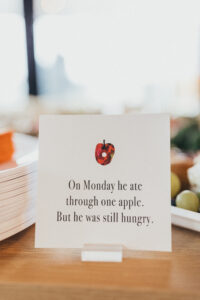 Staying true to the theme, partygoers were met with an array of whimsical cookies created by Jennifer Rose Custom Cookies – but uh-oh, it looks like The Very Hungry Caterpillar got to them first!