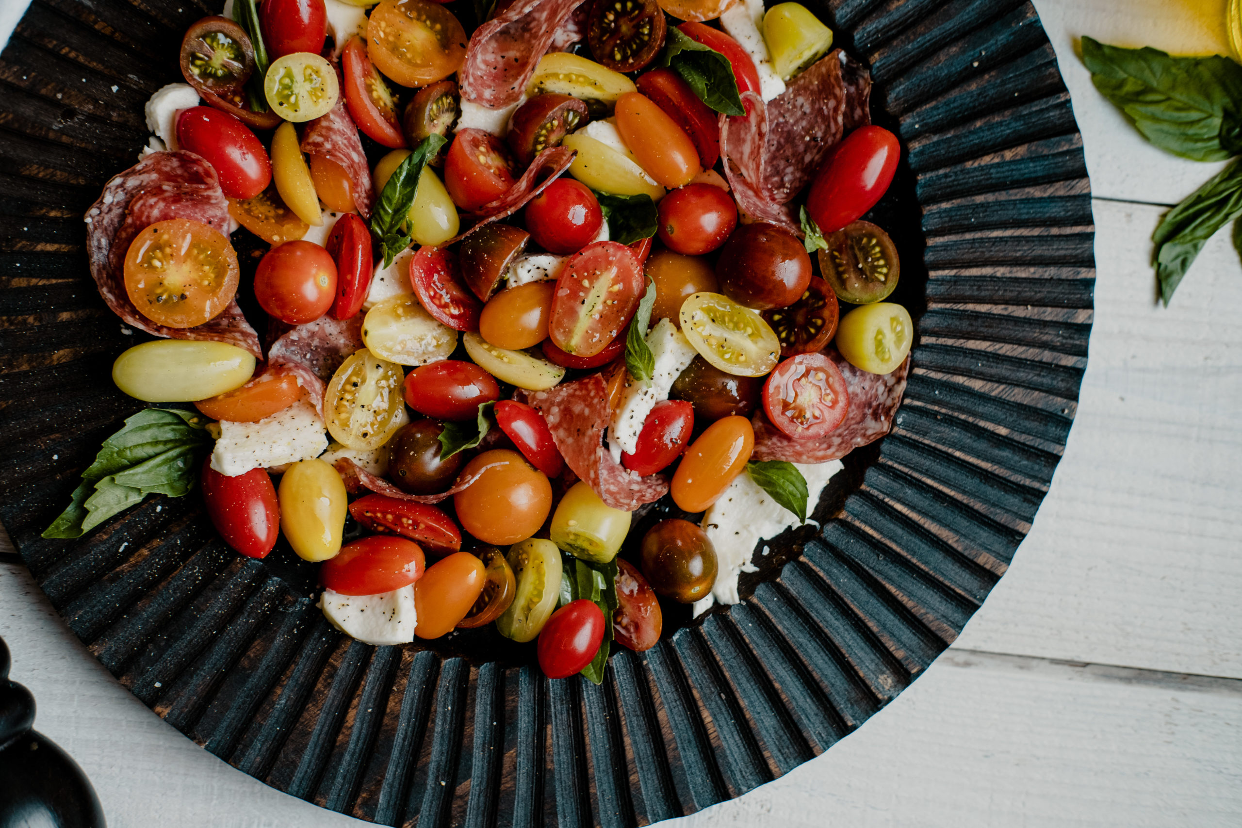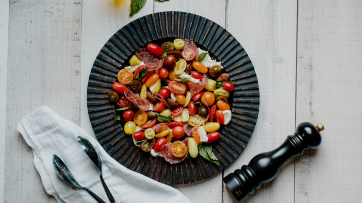 Caprese salad is a crowd-pleaser. Vine-ripened tomatoes, creamy mozzarella and citrusy basil marry seamlessly with only a drizzle of good-quality olive oil and a dash of salt and pepper. Our version includes salami, which adds an umami element to round out the dish. Customize your caprese with cucumbers, olives, prosciutto or oregano.