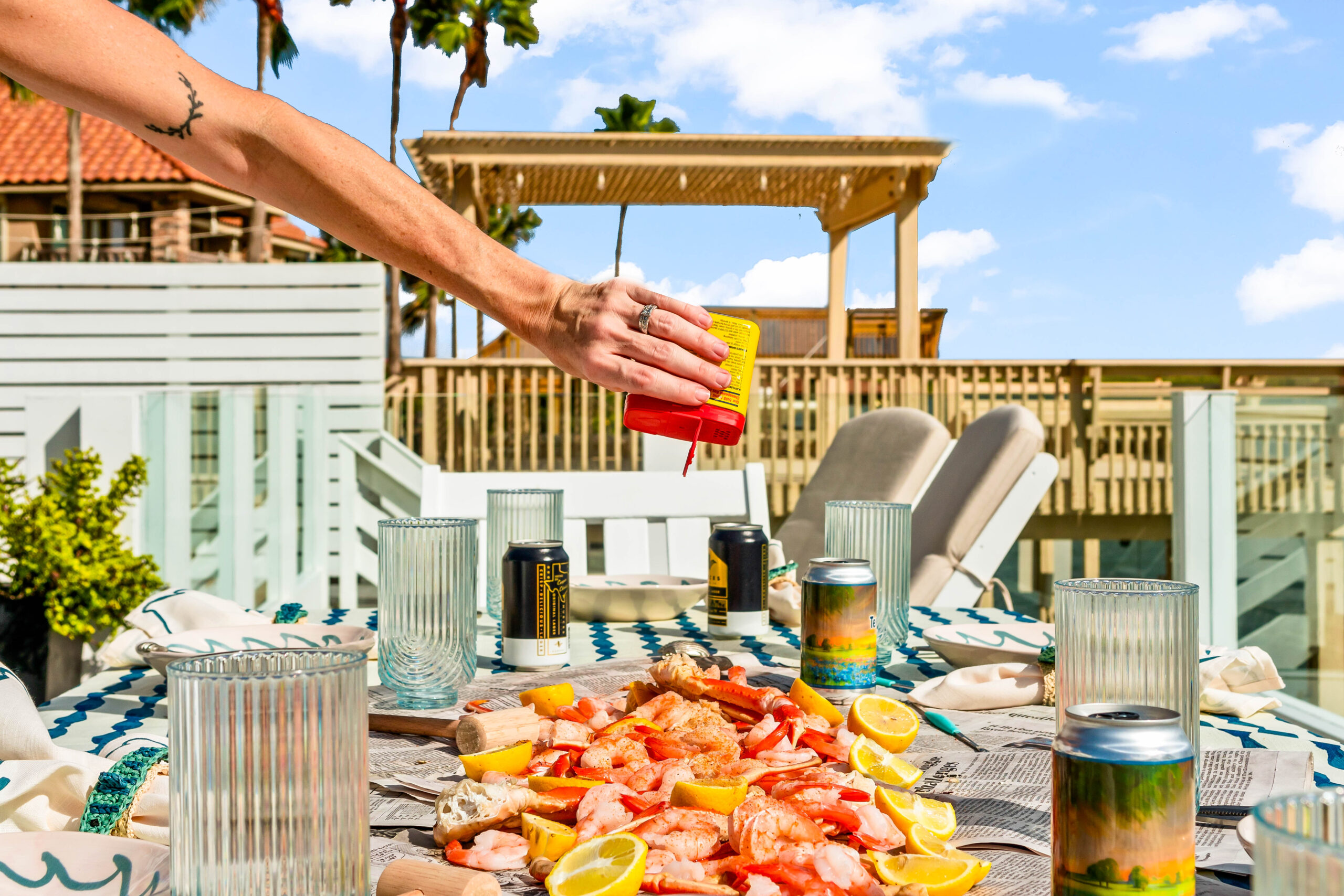 One of the joys of living in Corpus Christi is that winter weather can be delightfully mild, which makes alfresco entertaining perfect for the season. My family loves to gather on the deck for a Christmas Day shrimp and crab boil (we do our traditional meal on Christmas Eve). If you’re hosting outdoors, just be ready for a cold front to roll through, and always have a backup plan, whether that’s moving the party inside or setting up a covered area to shield guests from wind or drizzle.