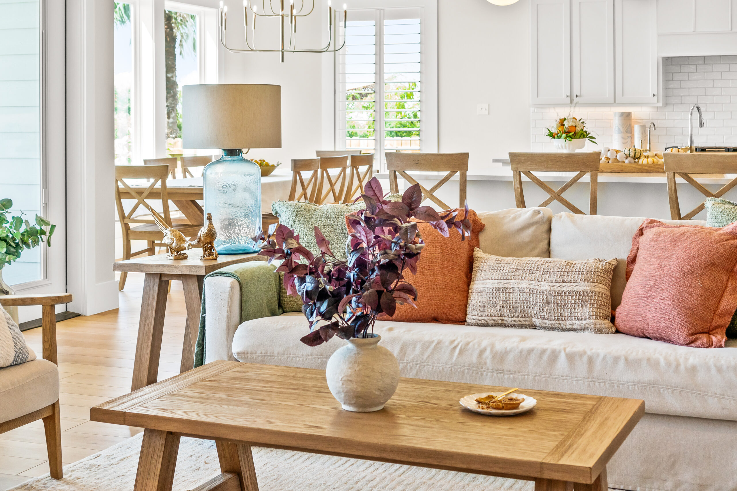 There’s no need to completely re-style (or remodel) your home before the holidays. A quick seasonal refresh can make a big difference: Swap out throw pillows, layer in a chunky knit blanket or add a fresh wreath to your front door. Even a simple bowl of citrus or pinecones on the table can create a festive mood without clutter. Focus on texture, color and greenery to bring a subtle, organic sense of the season into your space.