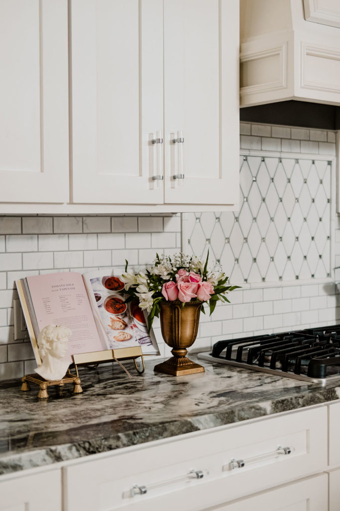Incorporate accessories: Adding in some functional but beautiful accessories can add personality to a kitchen. Chic countertop appliances, vintage artwork, a cookbook stand or a vase of flowers are inexpensive, quick ways to personalize your kitchen.